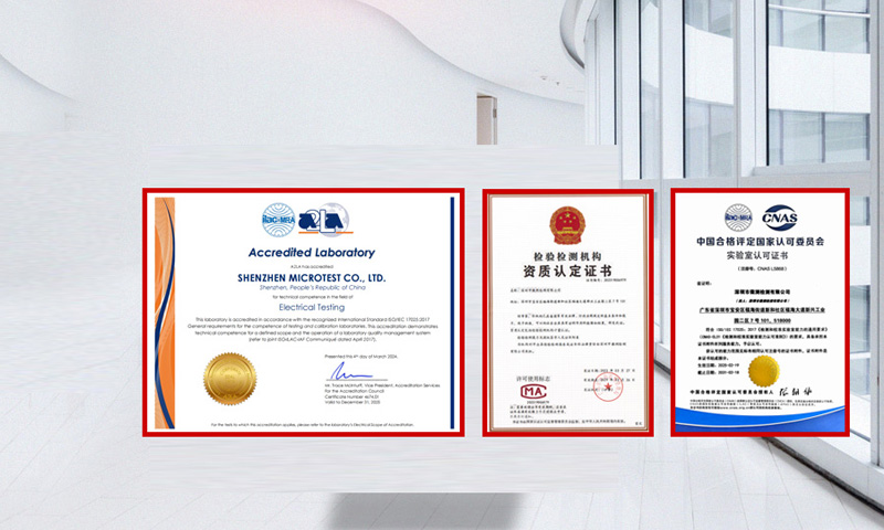 Microtest微測(cè)檢測(cè)已建立起20余個(gè)專業(yè)實(shí)驗(yàn)室,128人的工程師團(tuán)隊(duì),10000㎡檢測(cè)科技園,已獲得CNAS、CMA、A2LA、CBTL、WPC、Bluetooth SlG等授權(quán)和認(rèn)可,可為企業(yè)提供全球上百個(gè)國(guó)家的測(cè)試服務(wù)。