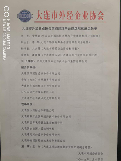大連市外經企業協會第四屆理事會候選成員名單