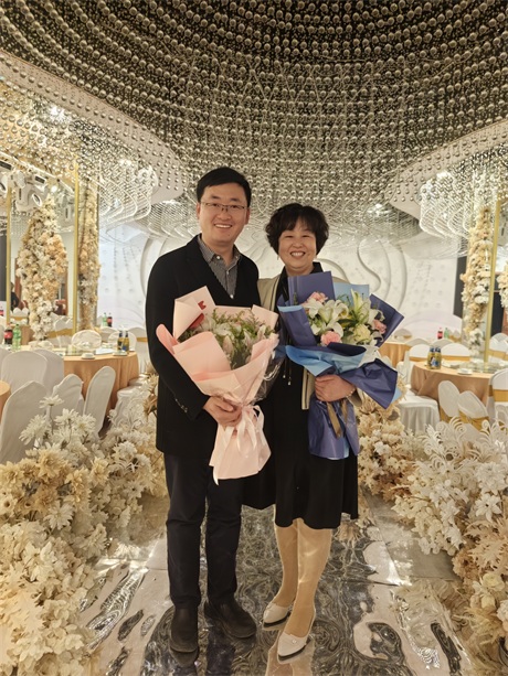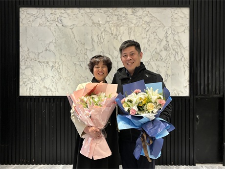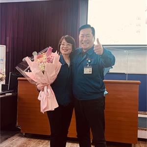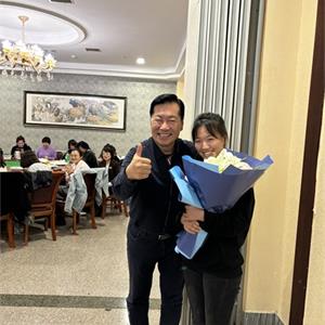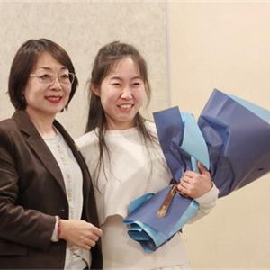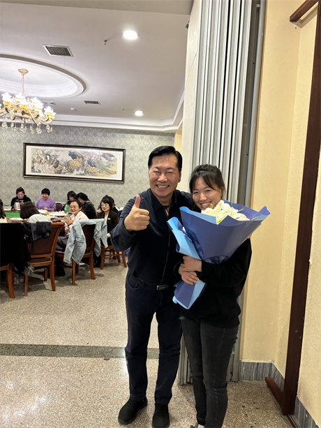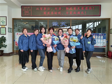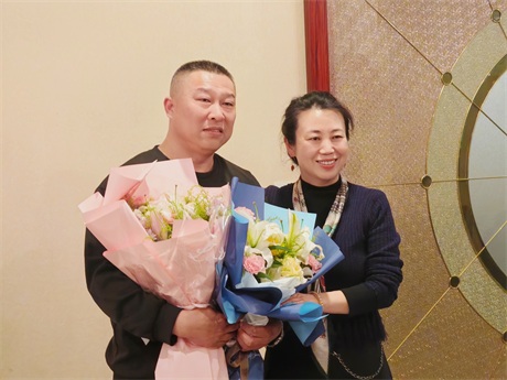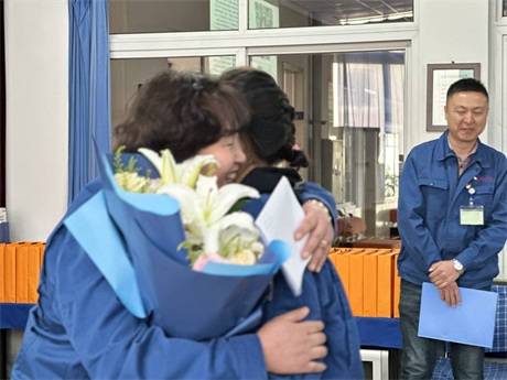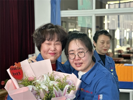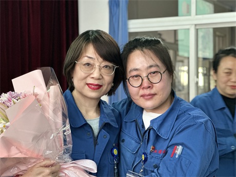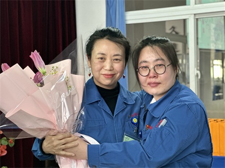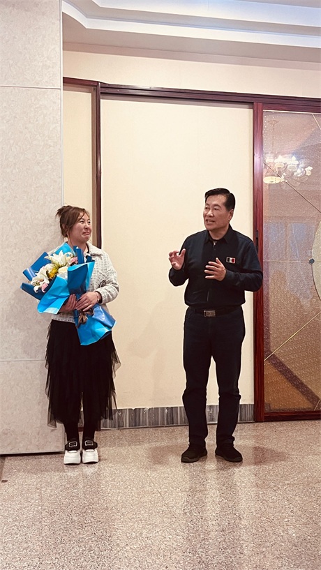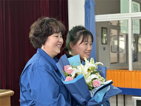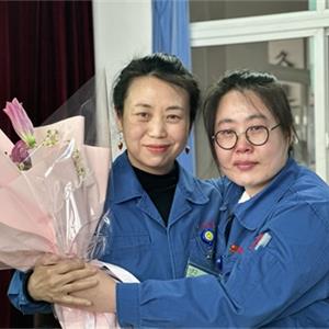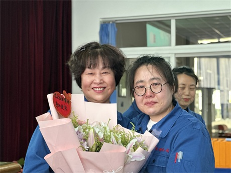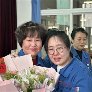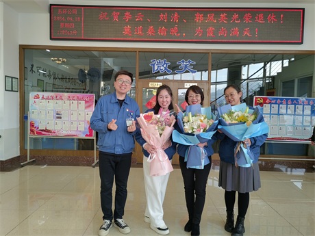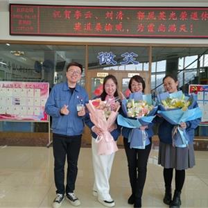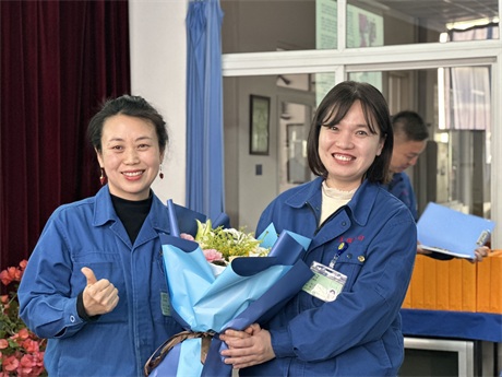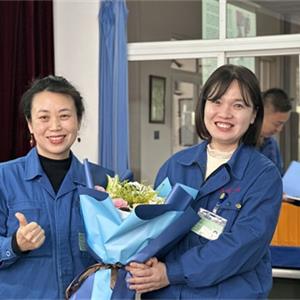 常:鮮花是五環全體兄弟姐妹對三位姐姐的祝福,為什么讓新員工給老員工獻花呢,是因為五環有老帶新的傳統,這是一種傳幫帶的精神,也讓新員工對老員工、前輩、師傅表達自己的尊敬和祝福。下面有請劉清姐。