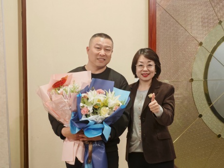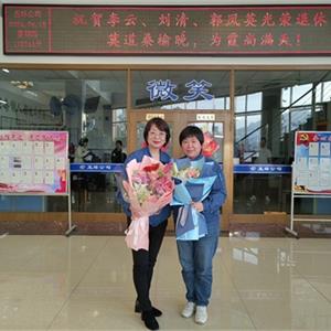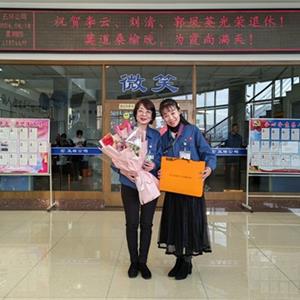常:感謝李勇經理和宋毅經理的肯定與祝福。在座談會開始之前,我們的好姐妹王洪娣找到我,告訴我,她以個人的名義給三位姐姐準備了禮物,想表達自己的祝福,下面有請三位姐姐和剛剛晉升為王教授的王洪娣上臺。