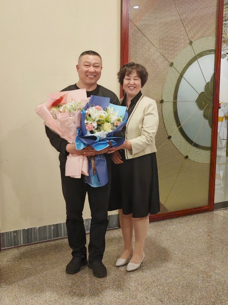 常:鮮花是大家用心挑選的,不同的花有不同的花語,代表不同的意義。我們選了四種花,其中:白色百合代表純真、忠誠、神圣和高雅;黃色玫瑰代表深厚的感情;向日葵代表對生活和未來的熱愛和憧憬;粉色康乃馨代表美麗、年輕、熱愛和永遠不會忘記。有請郭姐分享。